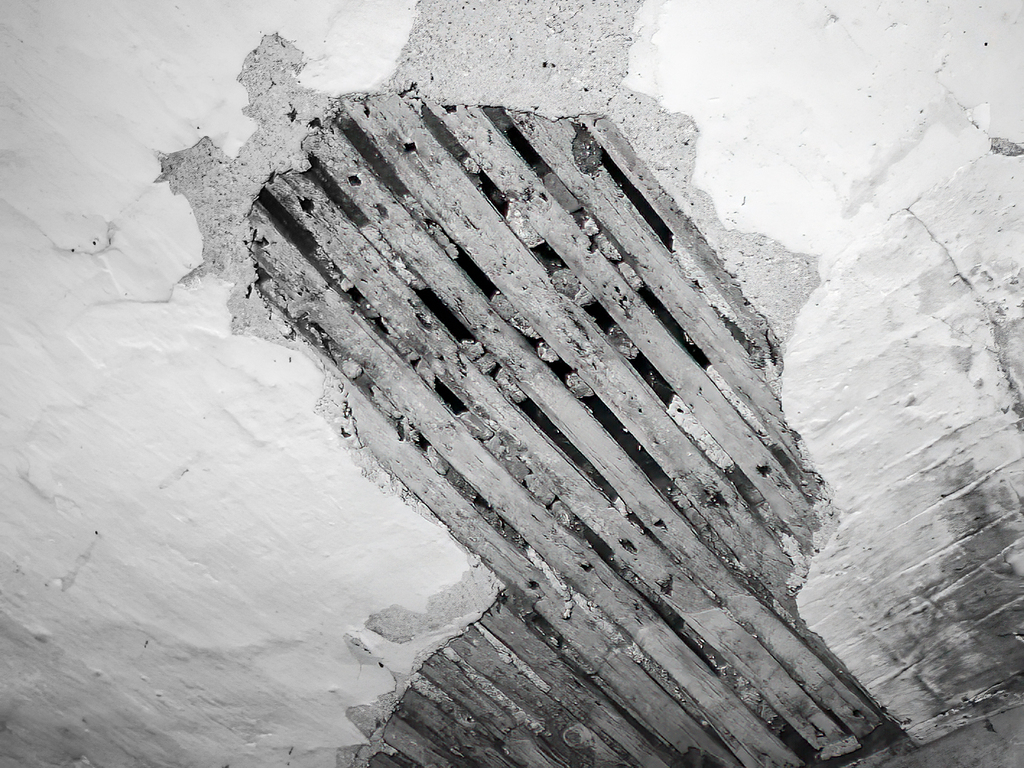 The internal walls other than in the outbuildings were made from lath and plaster; in the older less well-maintained parts of the house this was very obvious!