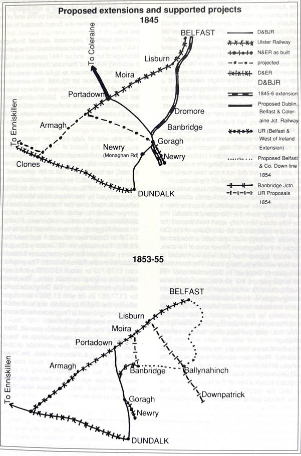 The businessmen and gentry of Dundalk and Newry were promoting schemes for railways into the hinterland of their respective ports and also showed little inclination to invest in the Junction. The Dundalk scheme was that of the Dundalk & Enniskillen, which was in many ways complementary to the Junction project, and which was always its staunch ally in the railway politics of the age. The Newry project was that of the Newry & Enniskillen, whose early history of financial ineptitude was a major influence on the affairs of the Junction, and rarely for its good.