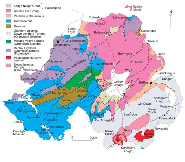 The bedrock beneath Poyntzpass and surrounding areas is mainly ancient Silurian shales and slate, dating back around 300 million years. In parts of County Armagh and North Down, these rocks are overlain by more recent basalt flows from the Eocene period, but in the Poyntzpass area, Silurian formations are close to the surface.